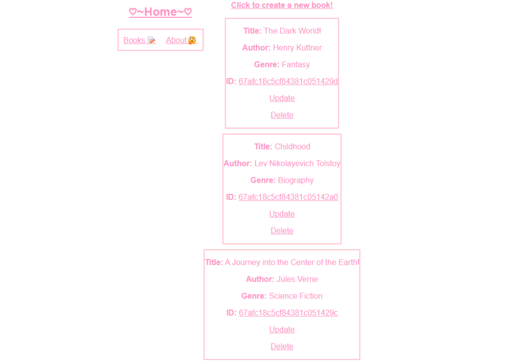My latest project is a book management application (image on the right). Built using Kotlin and React, it features full CRUD functionality, allowing you to create, read, update, and delete books with ease. Plus, it comes with an adorable pink-themed design!